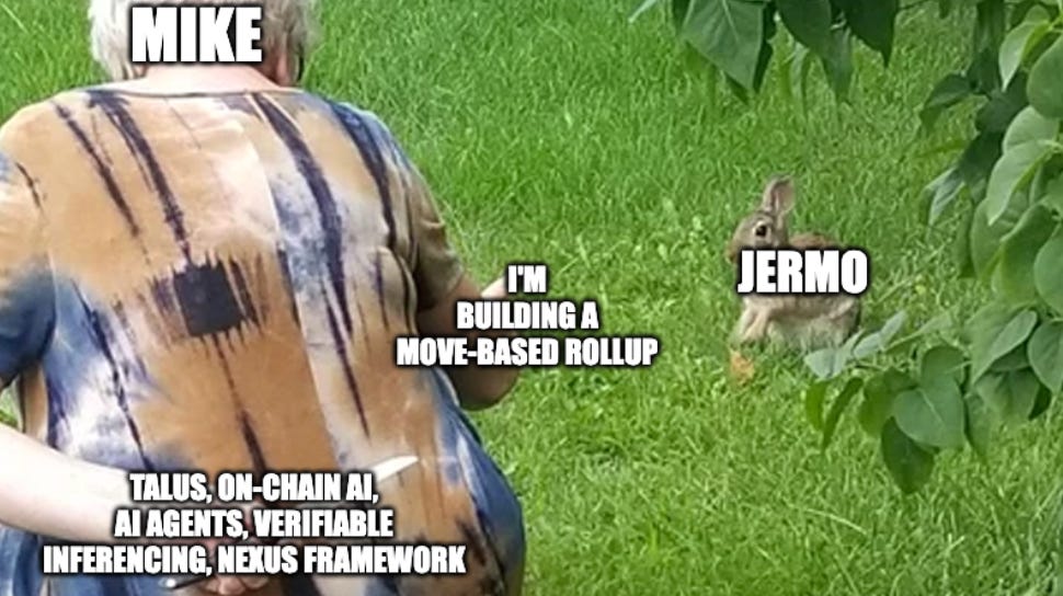 What began as a casual conversation about the future of Ethereum and Move evolved into something far greater, a vision for the convergence of AI and blockchain that’s now being realized through Talus. Although I am genuinely fascinated by what Talus is building, I anticipate certain challenges ahead. From the early days of MoveUp to the sophisticated Nexus framework, the team has consistently demonstrated an ability to execute, adapt, and innovate ahead of the curve. Talus is building an open, verifiable, and permissionless foundation for intelligent systems that can operate with integrity on-chain. While doing so, they’re addressing one of the most overlooked problems in AI - the (over)reliance on trust.