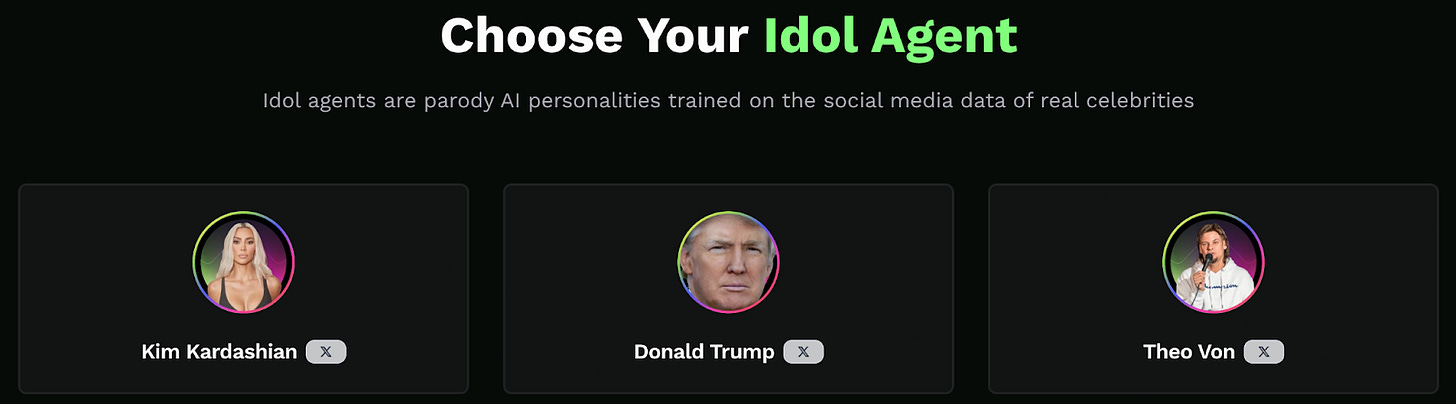 Launched in mid-September, Idol.fun has already gained impressive traction in just over a month, it has attracted over 60K combined user engagements. The version was both experimental and entertaining, featuring three Talus-powered agents, each designed to imitate a distinct public persona, as shown in the image below.