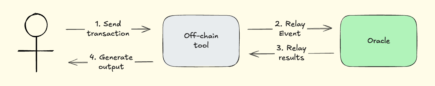 The primary component consists of an external service or API that operates entirely off-chain. In some cases, a secondary on-chain component may be incorporated to verify the off-chain process. The inclusion of this verification layer is determined by the specific use case and the security or transparency requirements of the end user.